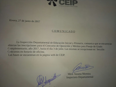 Esta Inspección comunica que el día lunes 12 de junio a la hora 9, por videoconferencia se ofrecerá la Dirección de la escuela N° 153.